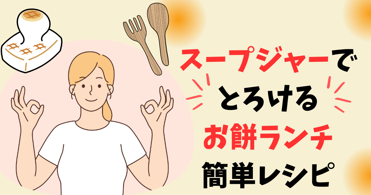 今回は、ランチにスープジャーでお餅を食べる時に、ちょうど良くとろけるような、煮込み時間、水の量、容器、即席スープをご紹介。朝の5分調理で、昼には絶品のお餅ランチが楽しめますよ。